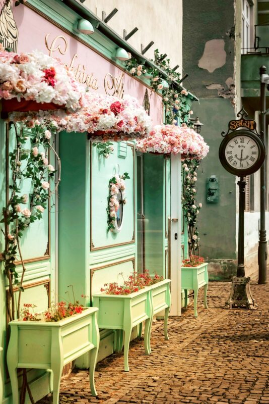 Am deschis ușile în inima Sibiului, în Centrul Vechi, acolo unde parfumul nostalgiei se întâlnește cu prospețimea zilei de azi. Clădirea cu fațadă verde mentă și accente roz pastel a devenit repede un reper al bucuriei dulci – un loc unde fiecare vizită e o pauză de frumusețe, de răsfăț sincer și gusturi curate.